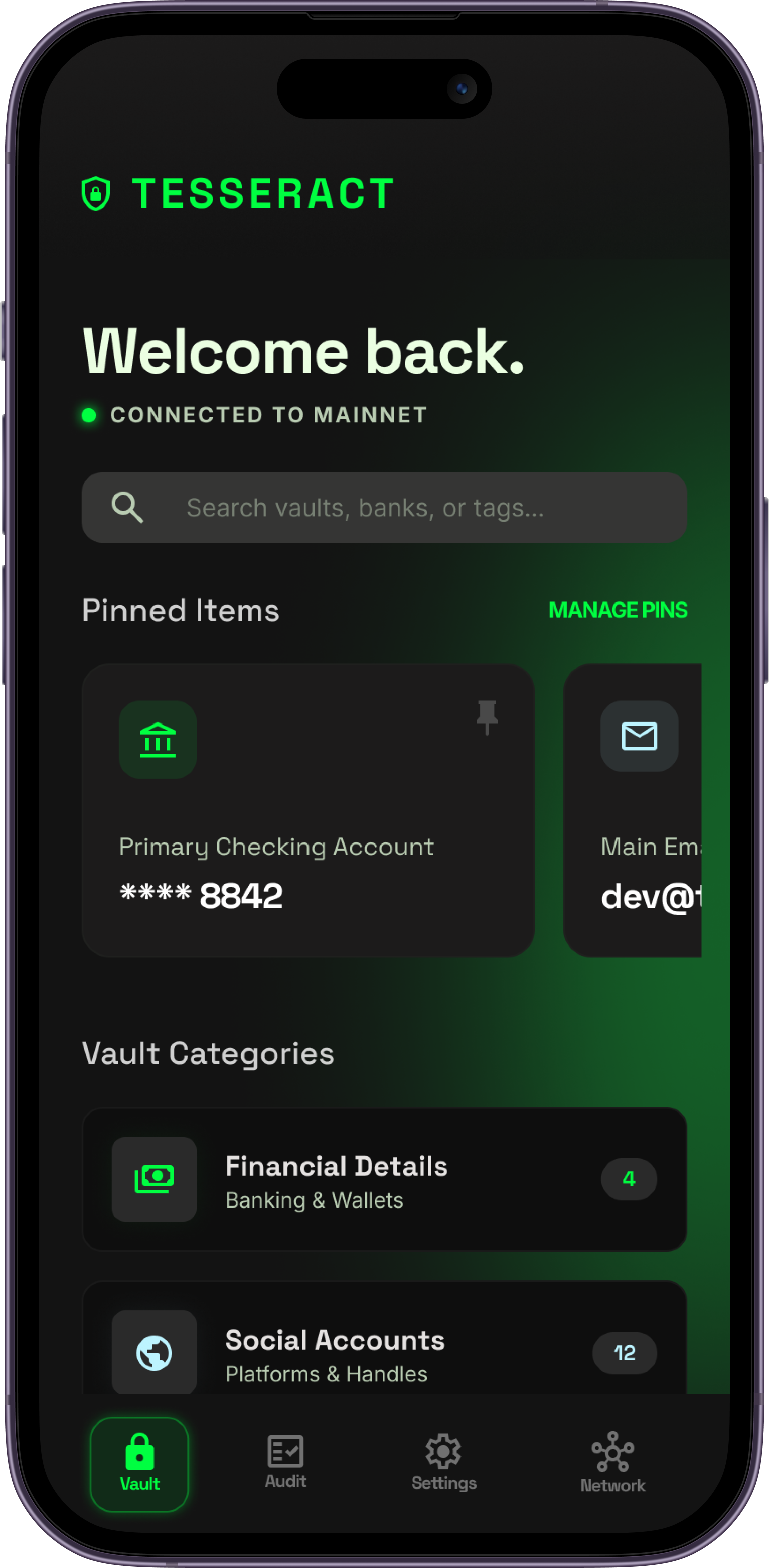 Tessera is a decentralized, zero-knowledge vault for your most sensitive digital credentials. By anchoring locally encrypted data to the blockchain, it ensures that only you hold the absolute master keys to your financial details, passwords, and private notes.