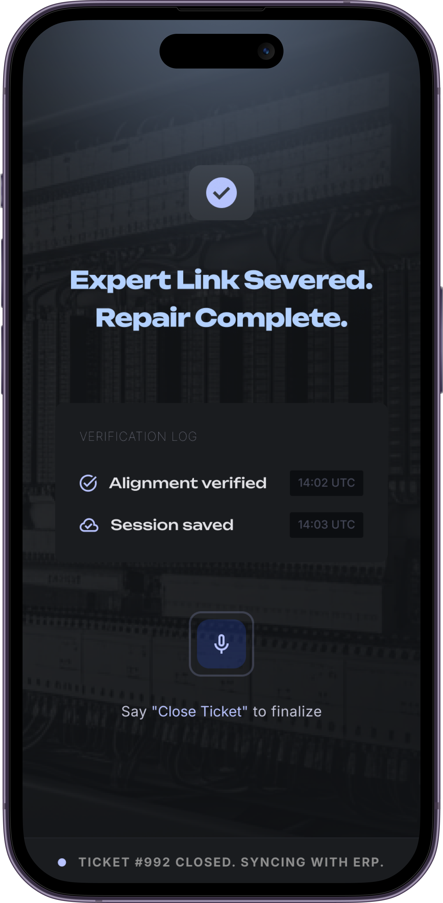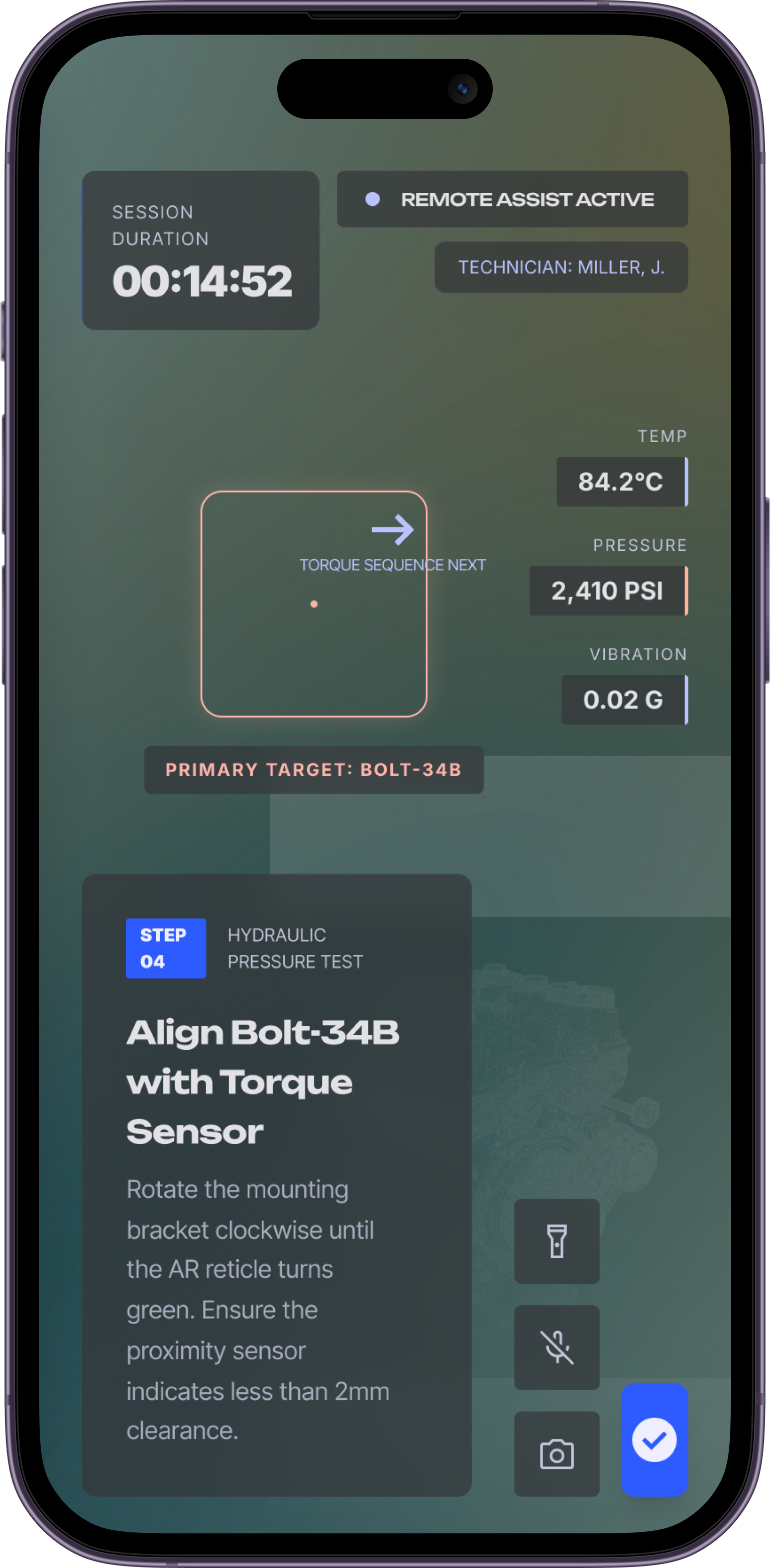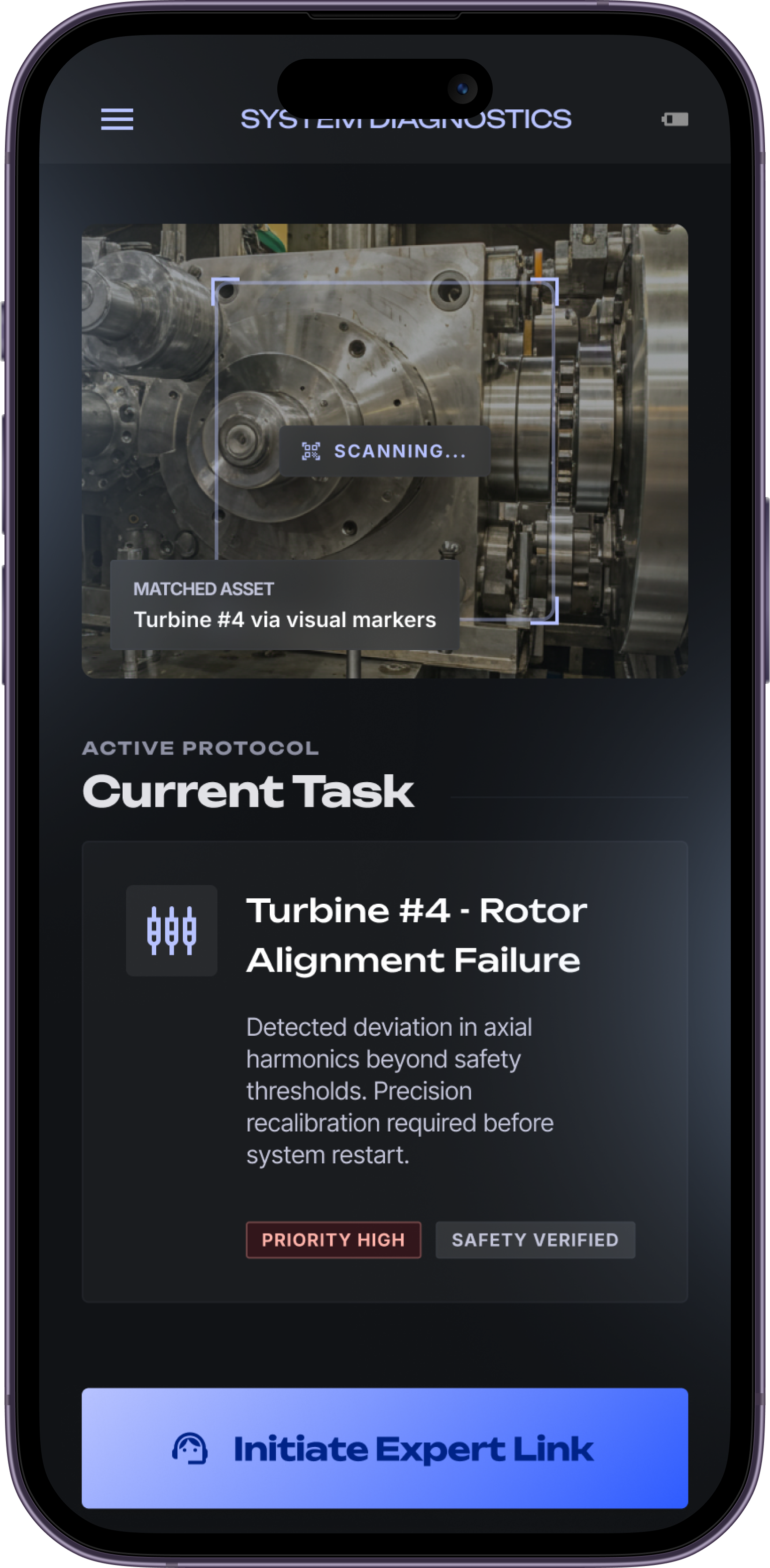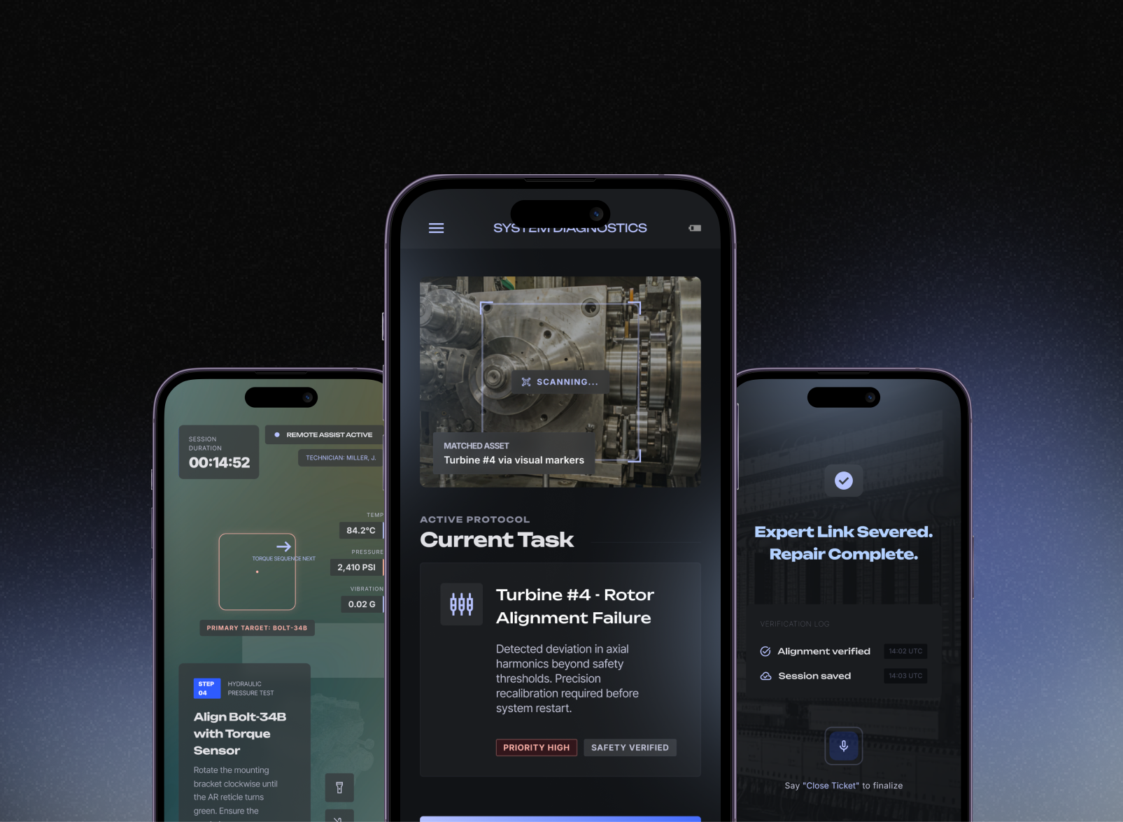 Lumen is an enterprise AR app designed for field technicians. The local junior technician wears an AR headset (like a HoloLens or Magic Leap) while looking at the broken machinery.
